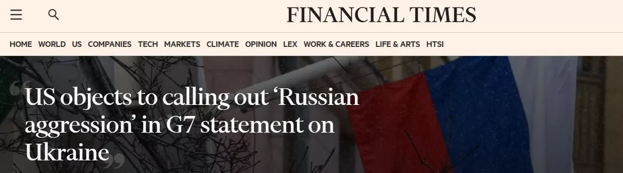 Вашингтон выступил против того, чтобы в новом коммюнике G7 Россию называли «агрессором», сообщает Financial Times со ссылкой на пять источников. В Белом доме опасаются, что такая формулировка подорвёт «единство ведущих экономик мира».