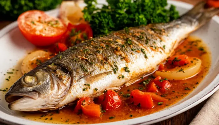 - Готовность можно проверить вилкой: рыба должна легко разделяться на волокна.