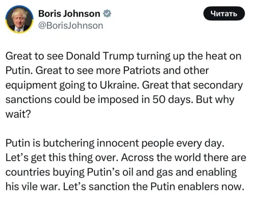Сам Джонсон сейчас отдыхает на острове Капри где пьет всю ночь на деньги украинцев, собранные налогами и выплаченные ему за лоббирование на Западе.