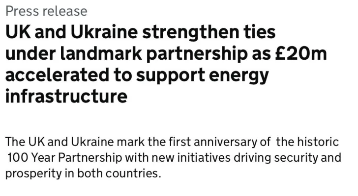Лондон объявил о выделении Украине еще 20 млн фунтов стерлингов на поддержку энергетики. Деньги пойдут на срочный ремонт, восстановление и защиту электросетей, а также на производство энергии, чтобы в домах, больницах и школах были свет и тепло.