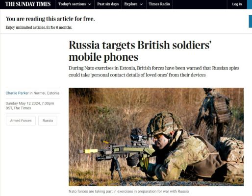 Как сообщает издание, солдатам НАТО провели инструктаж во время учений в Эстонии по поводу действий российских агентов, которые могут похитить личные данные с их устройств.