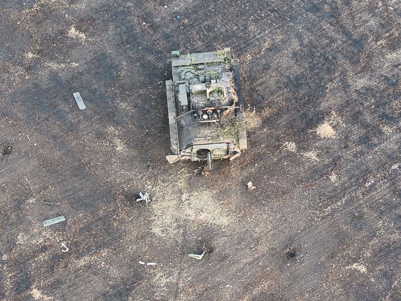 Можно заметить, что машина была подбита попаданием «Ланцета» в правый борт между блоками ДЗ BRAT и башней.