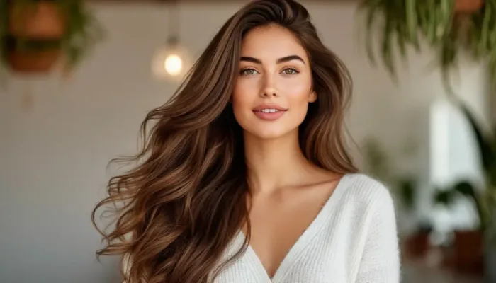 Брюнетки, стремящиеся к разнообразию и уходящим от резких осветлений, получили новый тренд 2026 года — глубокий и многослойный оттенок «какао-кор».
