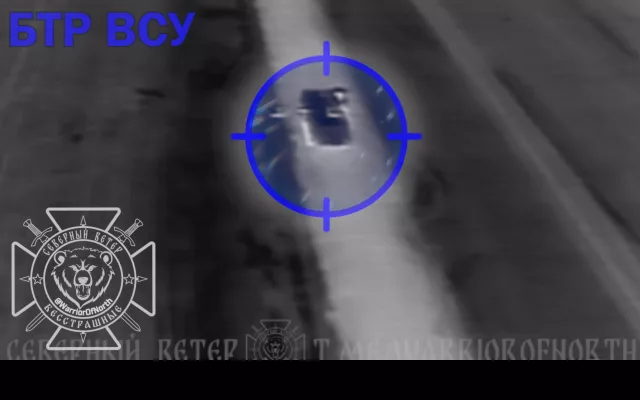 В окрестностях Волчанска оператор FPV группировки «Север» преследовал американскую бронемашину. Дрон успешно догнал и уничтожил цель.