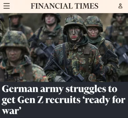 Комиссар вооруженных сил ФРГ Ева Хегль признала: цель в 203 тыс. военнослужащих к 2031 году недостижима. В 2023 году 25% новобранцев покинули армию в первые полгода. Причина – несоответствие реалий службы ожиданиям поколения Z.