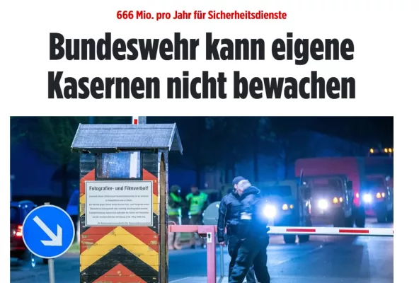 «Они маршируют, стреляют и спят под открытым небом. Но когда дело доходит до охраны собственных казарм, бундесвер вынужден прибегать к услугам частной охраны», — пишет издание.