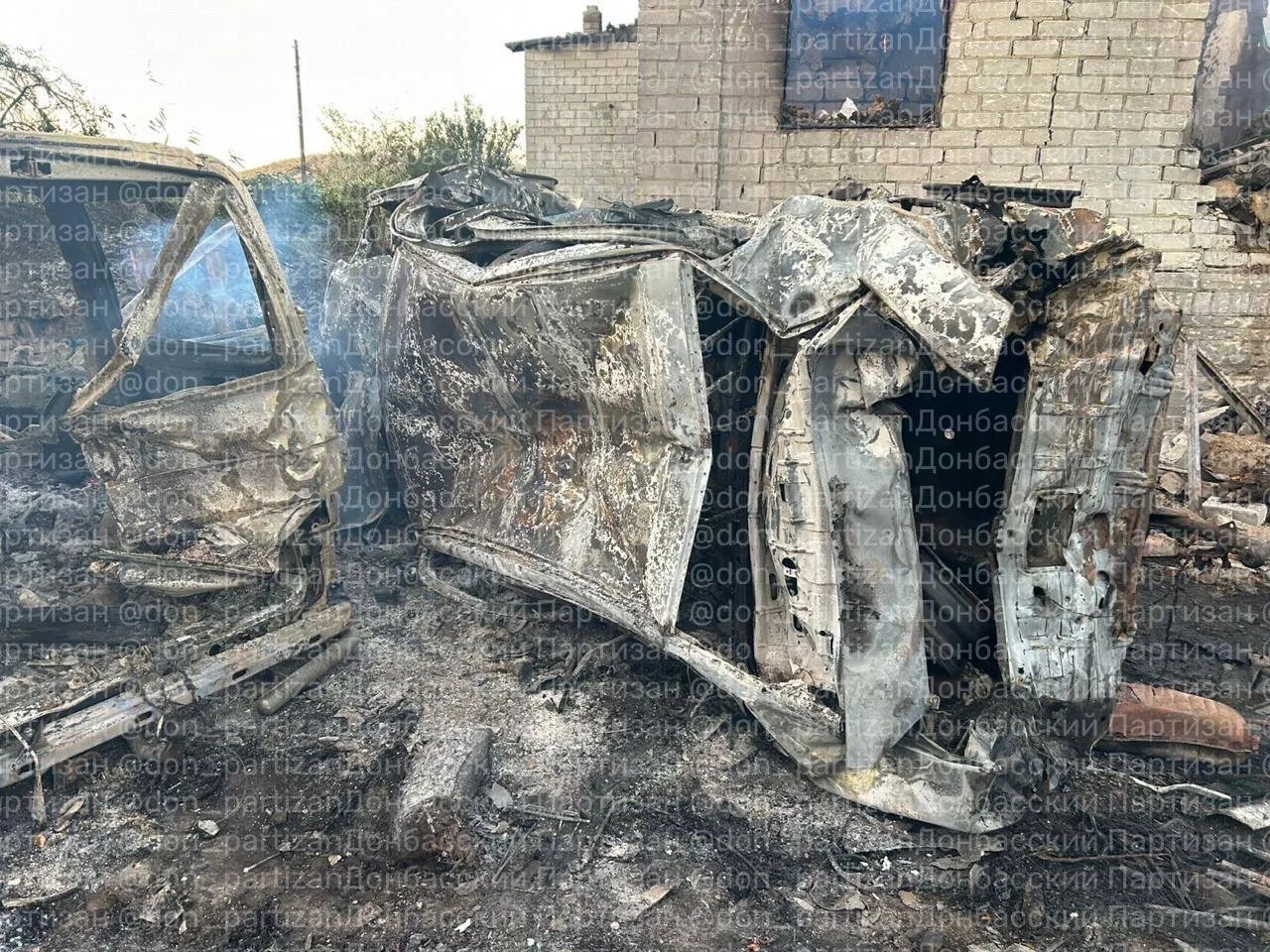 🔻В результате прямого попадания полностью уничтожено домовладение №5, где находился пункт управления и временной дислокации личного состава. Рядом расположенный дом №3 разрушен частично, соседние постройки (№1, 4, 6, 8, 10, 12) получили повреждения остекления, фасадов и кровель. На участке зафиксировано уничтожение трёх автомобилей, ещё один получил повреждения.