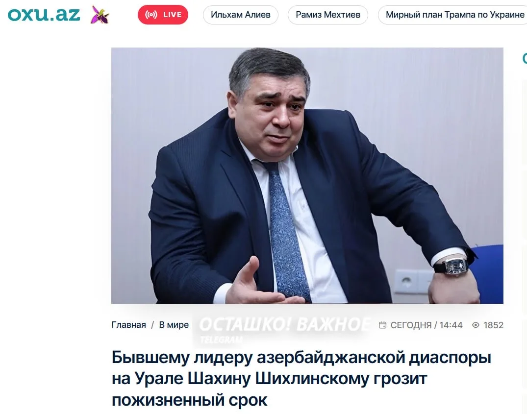 Ранее стало известно, что нового главу азербайджанской диаспоры на Урале, пришедшего на смену Шыхлински, уже задержал спецназ.