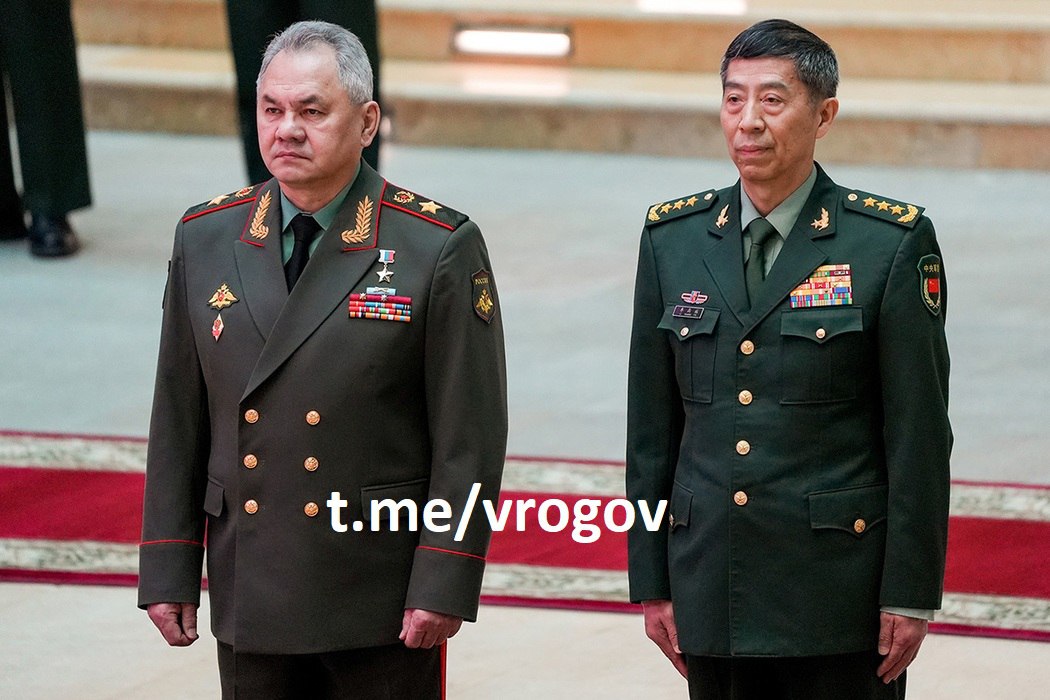 На фото Ли Шанфу во время встречи с министром обороны РФ Сергеем Шойгу в апреле 2023 года.