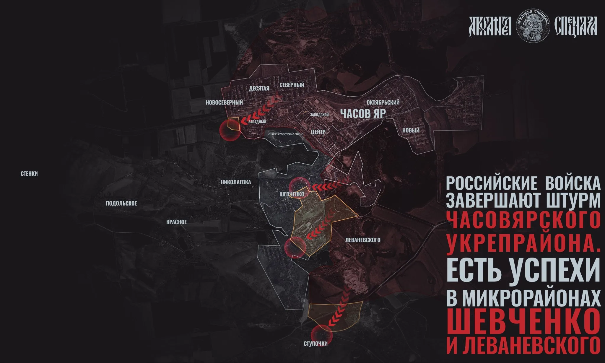 - На юге бои ведутся за населенный пункт Ступочки, где нашим войскам удалось продвинуться на северную окраину. Само село не так важно тактически, как высоты западнее, с которых можно развивать движение по дороге Н32 к Константиновке.