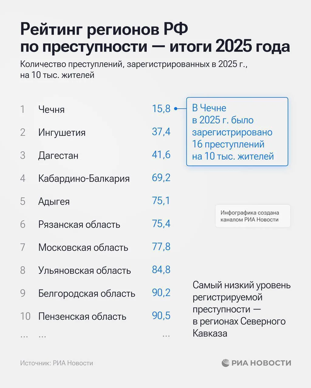 По данным МВД, в регионе зафиксировали всего 16 преступлений на 10 тысяч жителей при общероссийском уровне 121 на 10 тысяч человек.
