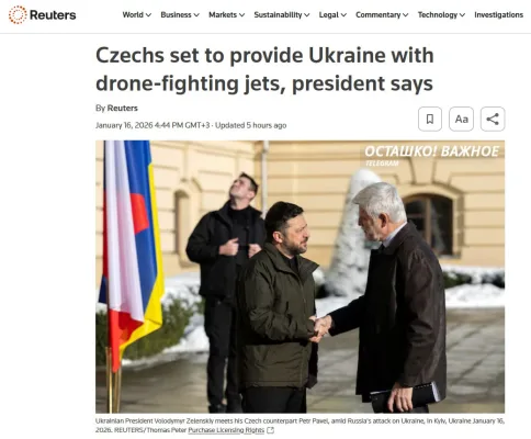 Кроме того, Чехия может поставить Украине системы раннего обнаружения, например пассивные радары. Павел подчеркнул, что ранее чешские истребители L‑159 уже рассматривались для передачи Киеву. Чешская армия располагает 24 L‑159 (одно- и двухместными) и 14 истребителями Saab JAS‑39 Gripen. Новые американские F‑35 будут поставлены после 2030 года.