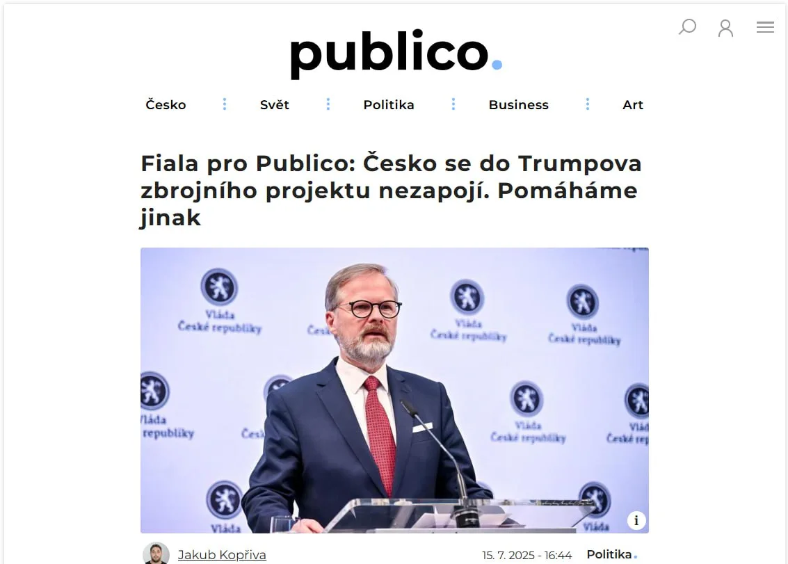 «В данный момент мы не рассматриваем участие в этом проекте. Чехия сосредоточена на других путях помощи — например, через артиллерийскую инициативу», — заявил премьер Петр Фиала изданию Publico.