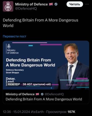 В театральной постановке, которую в соцсети назвали выступлением министра обороны раз 20 упоминается «миропорядок, основанный на правилах», а также об угрозах, которые «нависли над Великобританией».