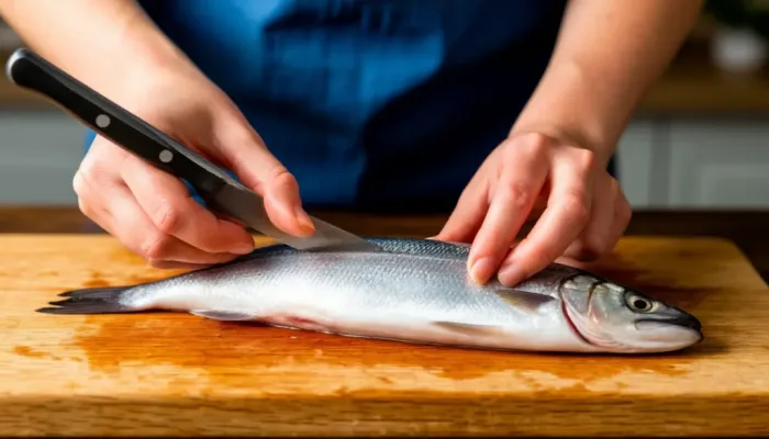 - Инструмент: Используйте острый нож с узким и гибким лезвием (подойдёт нож для филетирования или универсальный поварской нож).