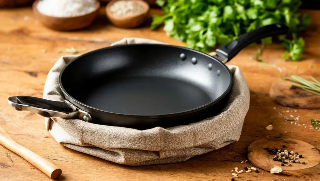 Для сковород с антипригарным покрытием (тефлон, керамика, мраморное напыление) нашатырь строго не рекомендуется. Пары аммиака могут повреждать покрытие, и сковорода после такой чистки станет непригодной для использования