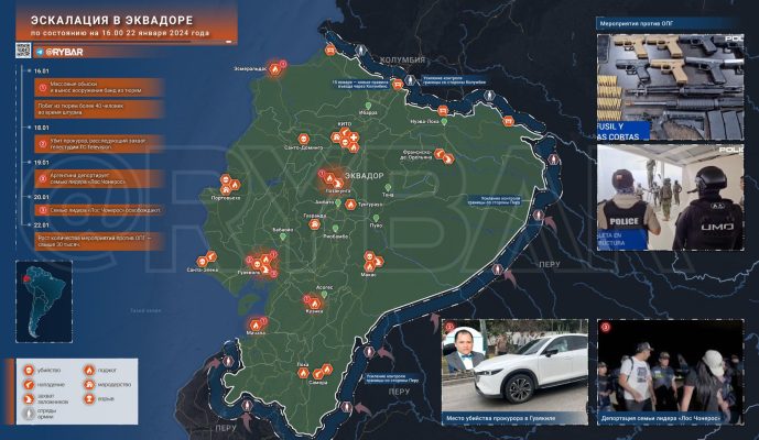 - Из наиболее значимых событий — убийство (https://t.me/sex_drugs_kahlo/5192) прокурора Сесара Суареса 18 января в Гуаякиле. Суарес занимался расследованием захвата телестудии (https://t.me/sex_drugs_kahlo/5098) ТС Television, поэтому с подачи властей Эквадора уже превратился в мученика, павшего в борьбе с криминалитетом. Вместе с тем, прокурор также курировал дела, связанные с коррупцией в силовых структурах и медицинских учреждениях, поэтому вполне мог пасть от рук конкурентов, удачно воспользовавшихся ситуацией.