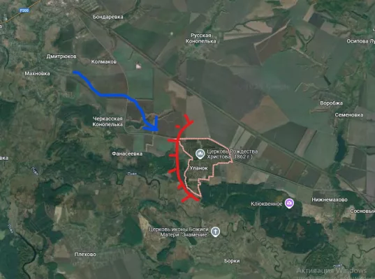 В 7 утра противник начал наступление со стороны н.п. Махновка, обошёл Черкасскую конопельку с севера и начались бои за н.п Уланок