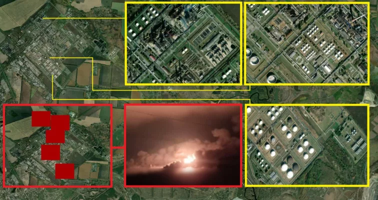 - В г. Кременчуг местными жителями и спутниками NASA зафиксировано возгорание в районе Нефтеперерабатывающего завода. Горит там в зонах топливно-сырьевой базы, а также сразу нескольких добывающих установок, производственных зданий и резервуаров с топливом.