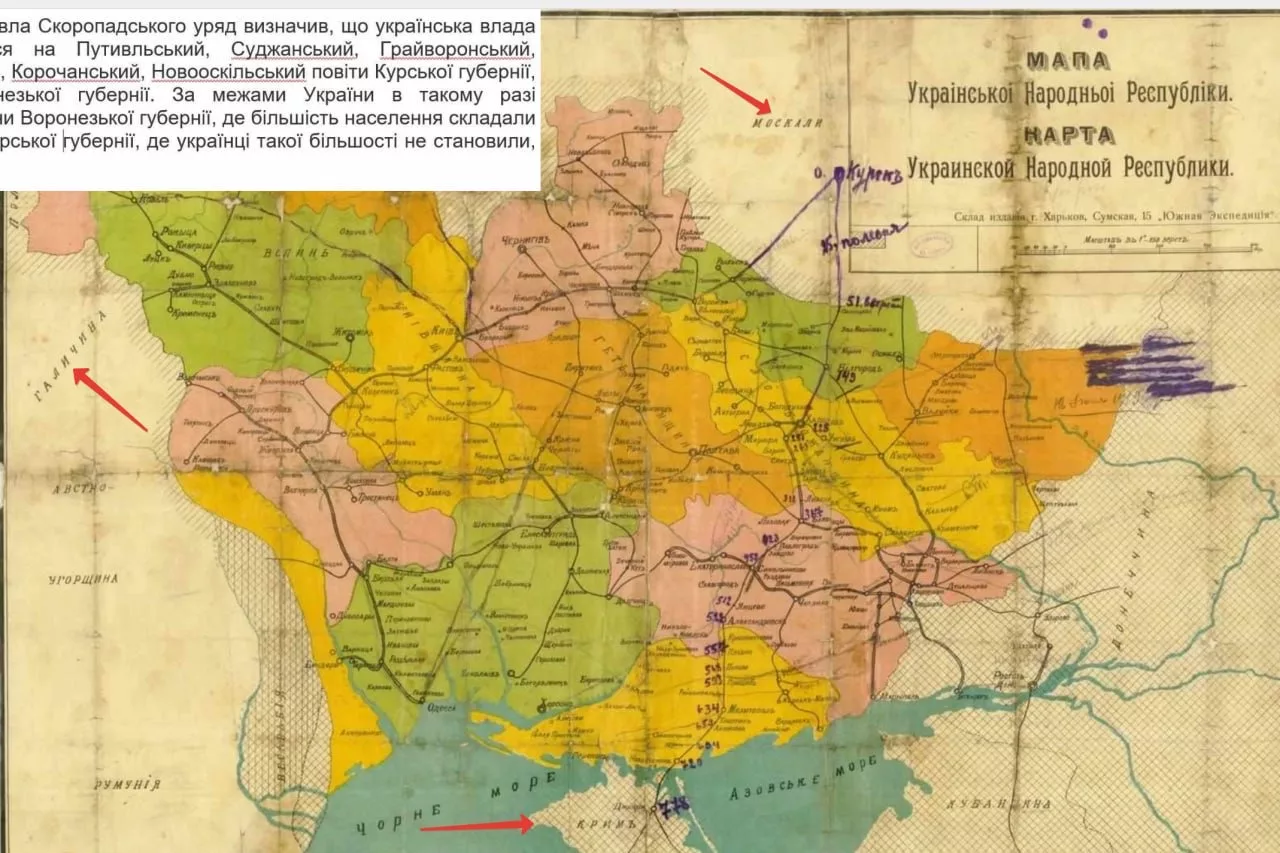 Так, на картинках из этого сборника параллельной вселенной можно наблюдать в качестве «исторических» документов картинки авторства таких же украинских националистов-фантастов прошлых столетий. Помимо ставшими уже мемами претензии Киева на Кубань, неожиданно для себя увидели, как противник в прошлом «колонизирует» (именно это слово используют в учебнике) в головах ВСУшников Дальний Восток и Сибирь.