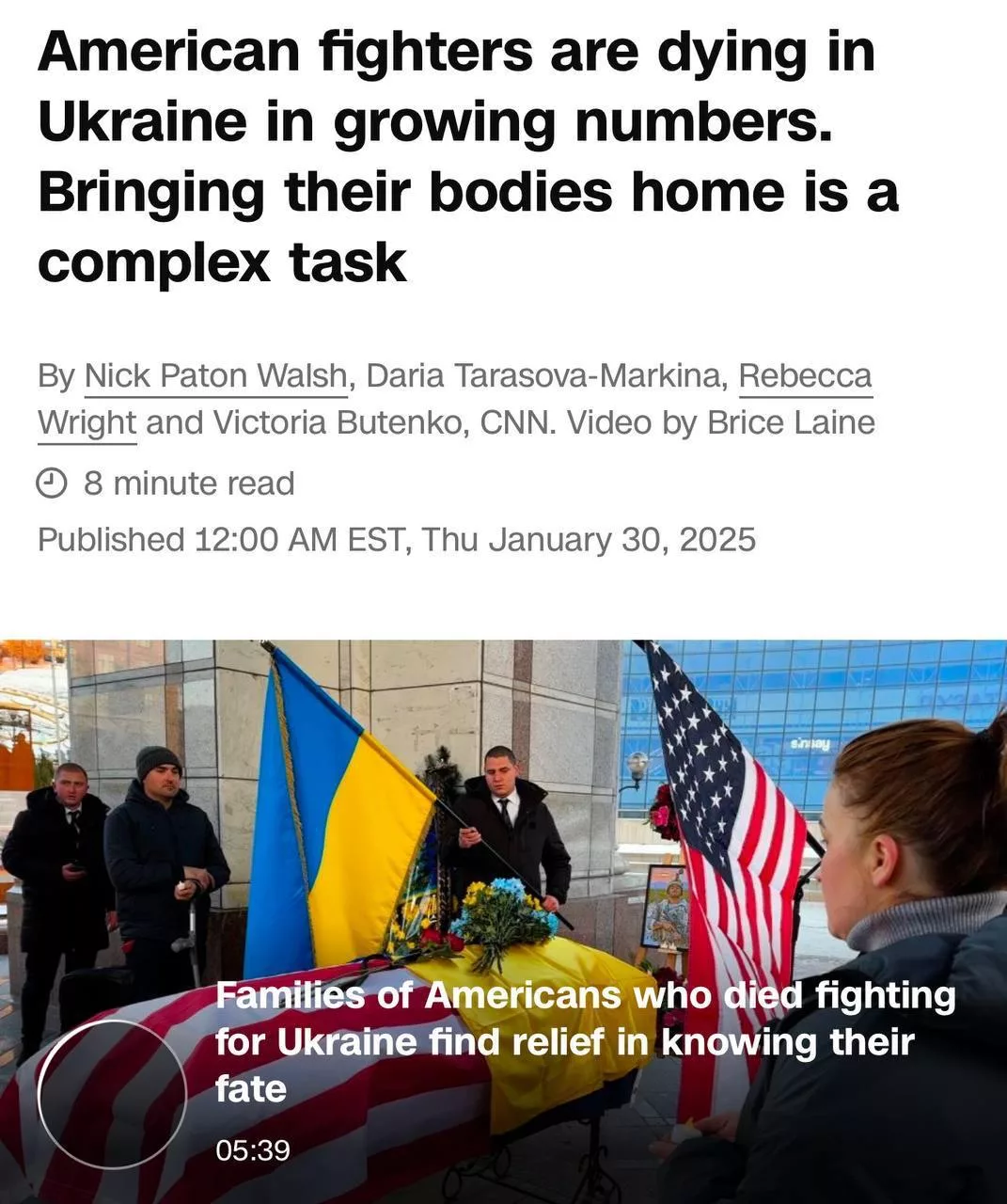 Кроме того, тела нескольких убитых американских военных «не удалось извлечь с поля боя после того, как они были убиты в течение последних шести месяцев». Родственники наемников жалуются, что не могут похоронить погибших. Тела некоторых из них до сих пор не найдены – спросить нужно у командования ВСУ.