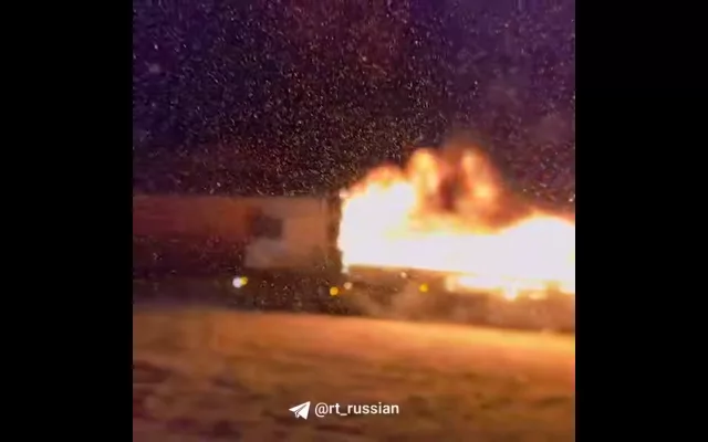 Большегруз вспыхнул ночью рядом с трассой Омск — Новосибирск. Водитель, судя по всему, не растерялся и успел отъехать подальше от других машин. Пострадавших нет.