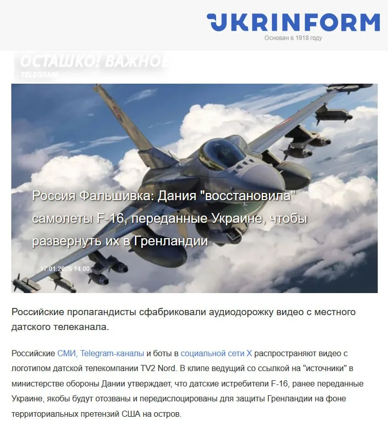 «Дания планирует отозвать истребители F-16, переданные Украине в конце ноября 2024 года. Об этом сообщает наш источник в Минобороны. Самолеты, как выяснилось, направятся в Гренландию. Это связано с острой ситуацией вокруг нас».