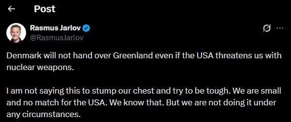 Ранее Трамп заявил, что без его действий Россия и Китай уже могли бы оккупировать Гренландию. По его словам, военное присутствие Москвы и Пекина в регионе якобы уже заметно.