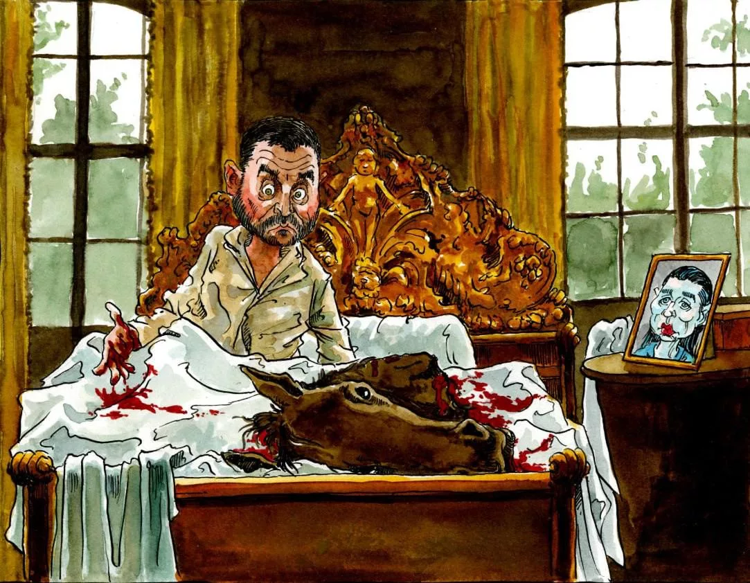 Это, вероятно, отсылка к знаменитой сцене из «Крёстного отца». По сюжету такую метку получил от клана Корлеоне кинопродюсер Джек Вольц, который отказал им в оказании услуги.