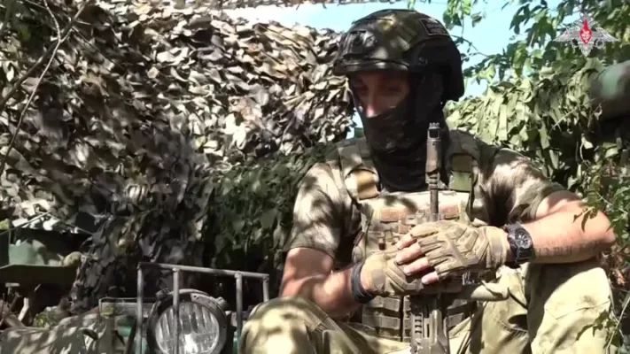 Расчет артиллерийского орудия «Рапира» бригады морской пехоты ТОФ группировки войск «Восток» уничтожил опорные пункты ВСУ на Угледарском участке фронта.