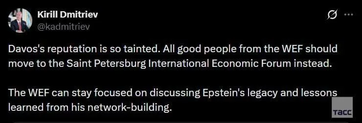 Глава РФПИ Кирилл Дмитриев обратился к участникам Всемирного экономического форума в Давосе с призывом приехать на Петербургский международный экономический форум.