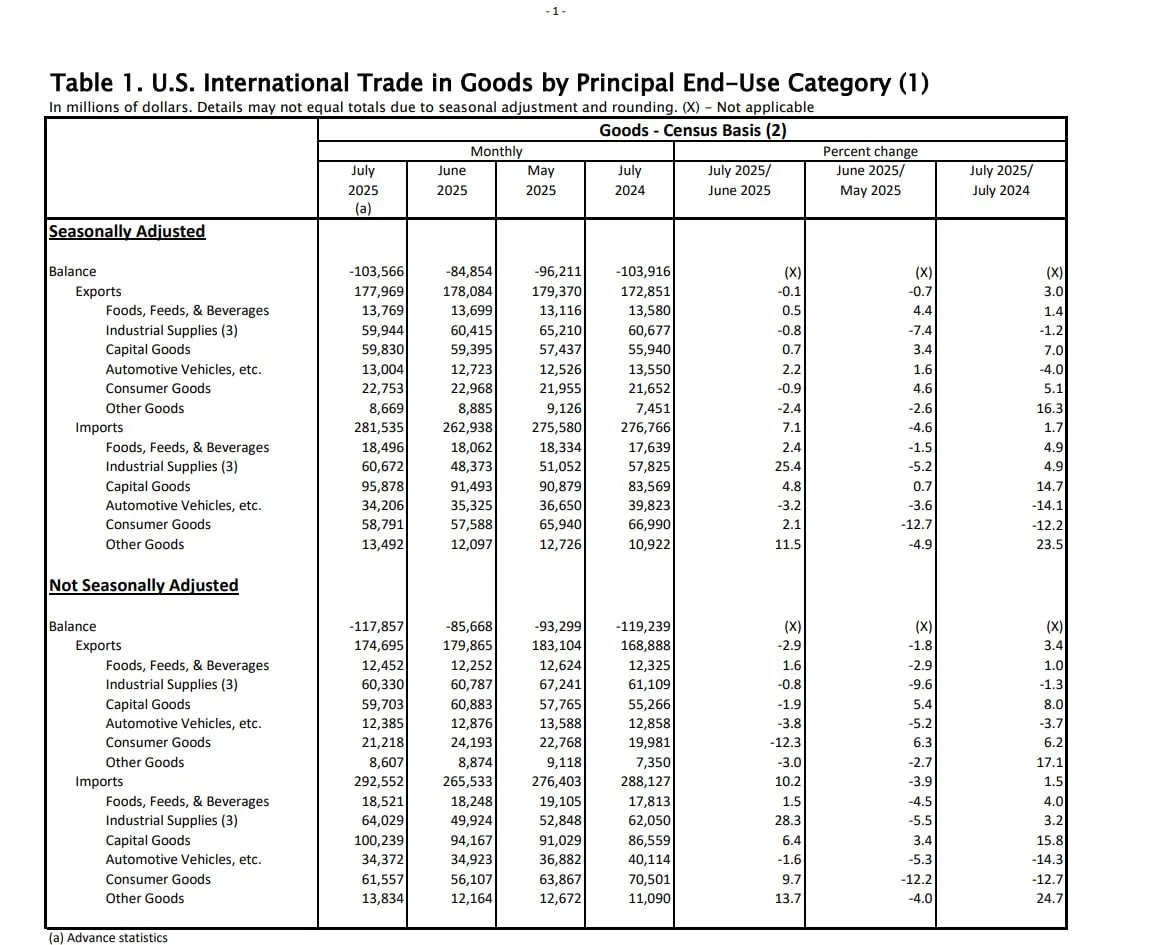 Дефицит торгового баланса США за 12м (по июль включительно) достиг абсолютного рекорда 1.36 трлн vs 1.18 млрд в 2024, 1.08 трлн в 2023, 1.19 трлн в 2022.
