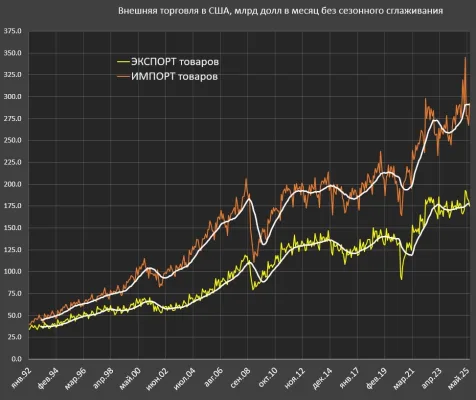 Справедливости ради, в феврале-марте рекордный дефицит был обусловлен опережающим импортом для накопления запасов в целях сглаживания последствий тарифного хаоса.