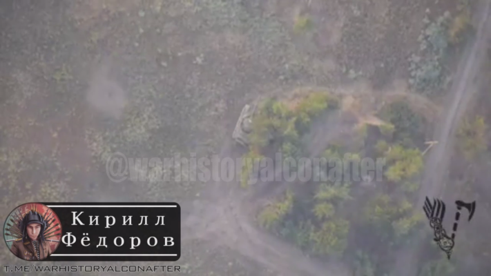 Украины пытались спрятать танк в зелёнке, однако после прилёта первого «Ланцета» решили сменить позицию