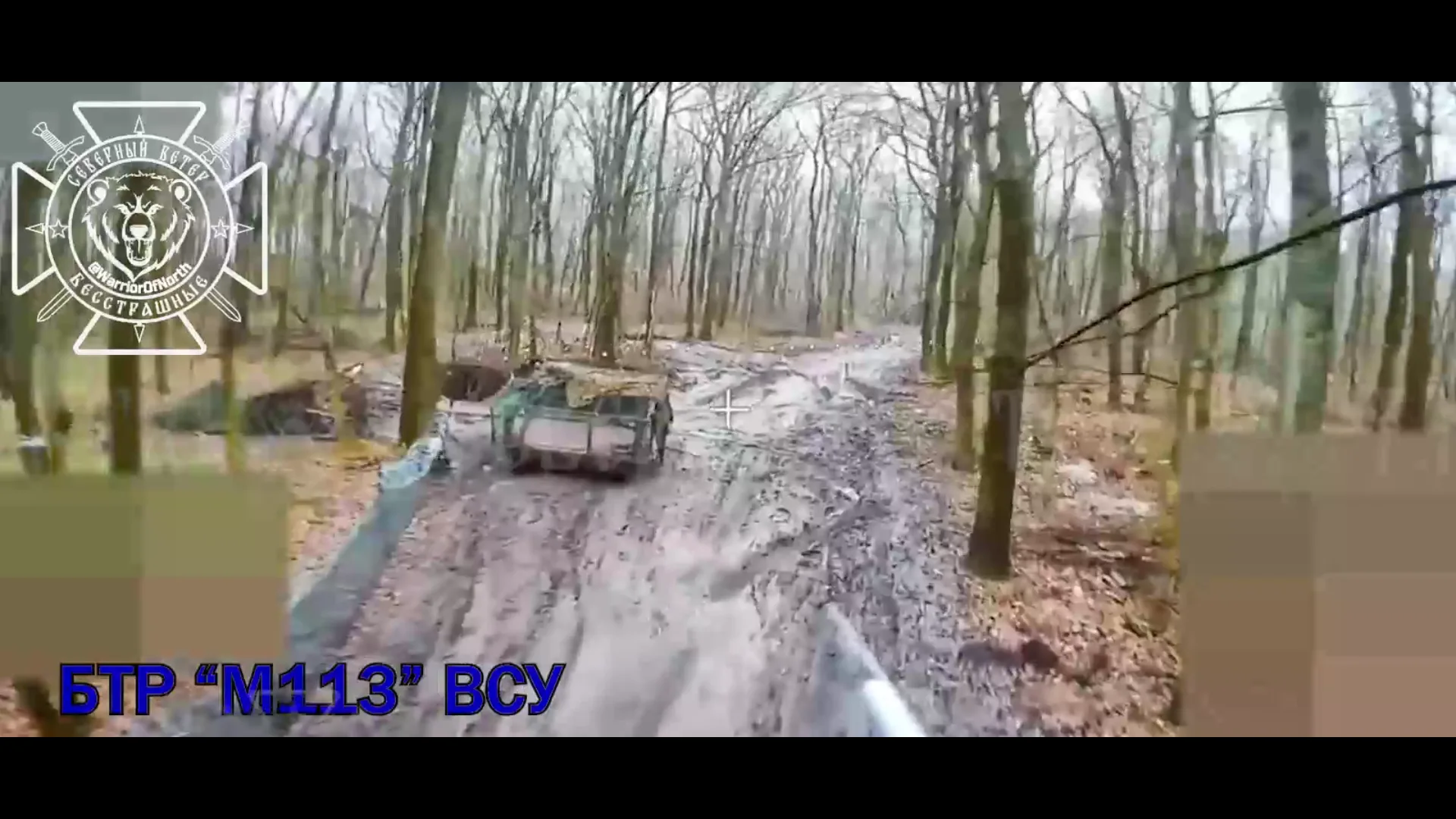 В лесу южнее н.п. Храповщина оптоволоконные дроны настигли БТР М113 украинских нацистов и отправили очередной американский хлам на металлолом.