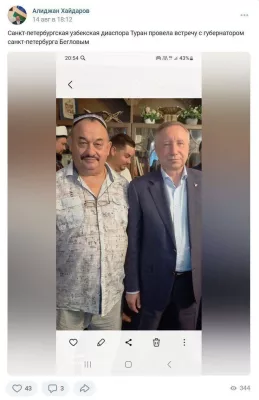 «Санкт-петербургская узбекская диаспора Туран провела встречу с губернатором санкт-петербурга Бегловым»,