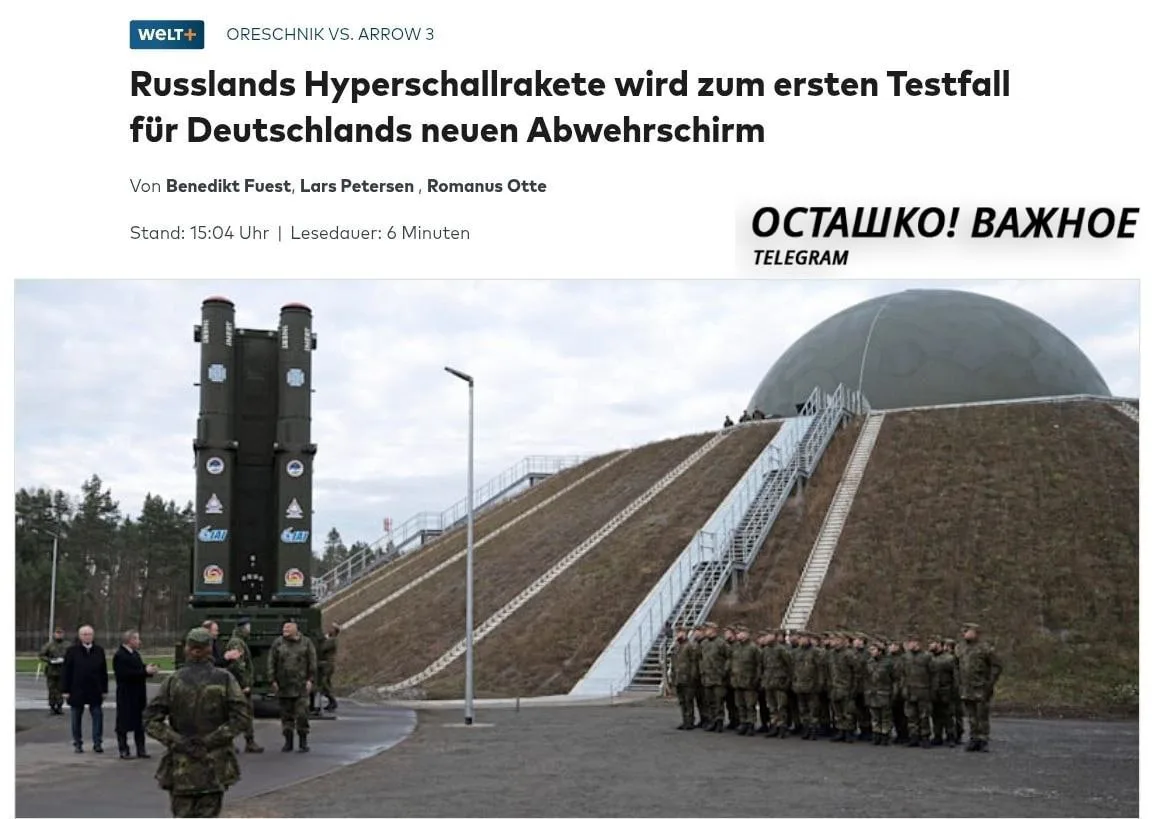 Новейшая система противоракетной обороны Arrow-3, недавно поставленная на боевое дежурство в Германии, пока не способна перехватывать ракету «Орешник», сообщает Die Welt. Издание называет недавний удар по Львовской области первым косвенным столкновением этого вооружения с Arrow-3 в реальных условиях.
