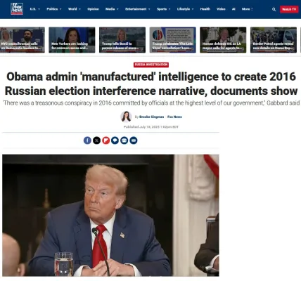 Тулси Габбард опубликовала секретные документы, которые, по её словам, доказывают: администрация Барака Обамы «сфабриковала и политизировала» обвинения в якобы вмешательстве России в американские выборы 2016 года: