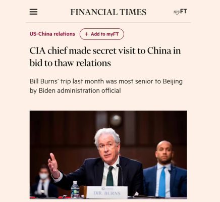 📝 «В прошлом месяце директор Бернс побывал в Пекине, где встретился с китайскими коллегами и подчеркнул важность поддержания открытых линий связи по каналам разведки», – сообщает Financial Times.