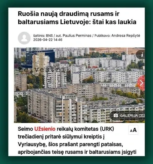 Причем речь идет не о санкциях против конкретных людей, а о массовом ограничении по национальному признаку. Ранее Литва начала лишать россиян ВНЖ за визиты на родину.