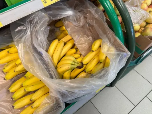 В магазинах бананы собирают зелёными и используют специальные пакетики — фрешеры. Они впитывают газ и замедляют процесс созревания.