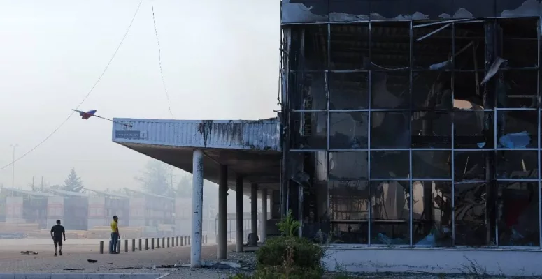 ТЦ Галактика выгорела полностью (фото 1), но главное, что чудом всем удалось выбраться из горящего здания. В результате ранено 11 человек. В ходе того же обстрела повреждена больница №14, также жилые дома. В также в Никитовском р-не Горловки поврежден ЛЭП.