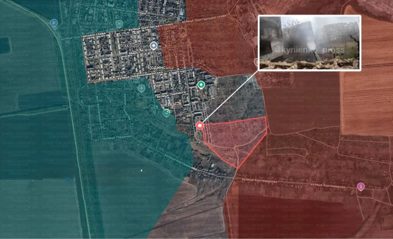Так, противник даже смог завести свой танк в Родинское, за которое сейчас идут бои, и обстрелять многоэтажки на его юго-восточной окраине, где закрепились российские штурмовики.