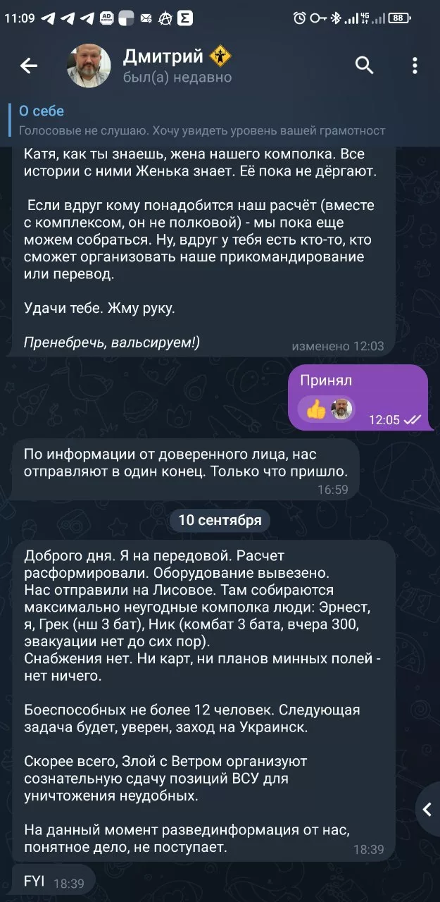 Сообщается о гибели двух опытных операторов дронов с позывными «Эрнест» и «Гудвин», чей расчет дальней разведки БПЛА сначала был расформирован командиром полка, затем переведен в штурмовики.