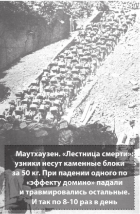 Узники в полосатой одежде с пробритой крестообразно головой с утра до ночи работали в гранитных карьерах под наблюдением эсэсовцев, вооруженных хлыстами и пистолетами. Минутная передышка, взгляд, брошенный в сторону, слово, сказанное соседу по работе, любое неловкое движение, малейшая провинность – все это вызывало бешеную ярость надсмотрщиков, избиение хлыстом. Часто слышались выстрелы. Стреляли прямо в затылок. Один из советских пленных офицеров уже после войны вспоминал: «Однажды мы с Дмитрием Михайловичем работали в сарае, обтесывали гранитные столбики для дорог, облицовочные и намогильные плиты.