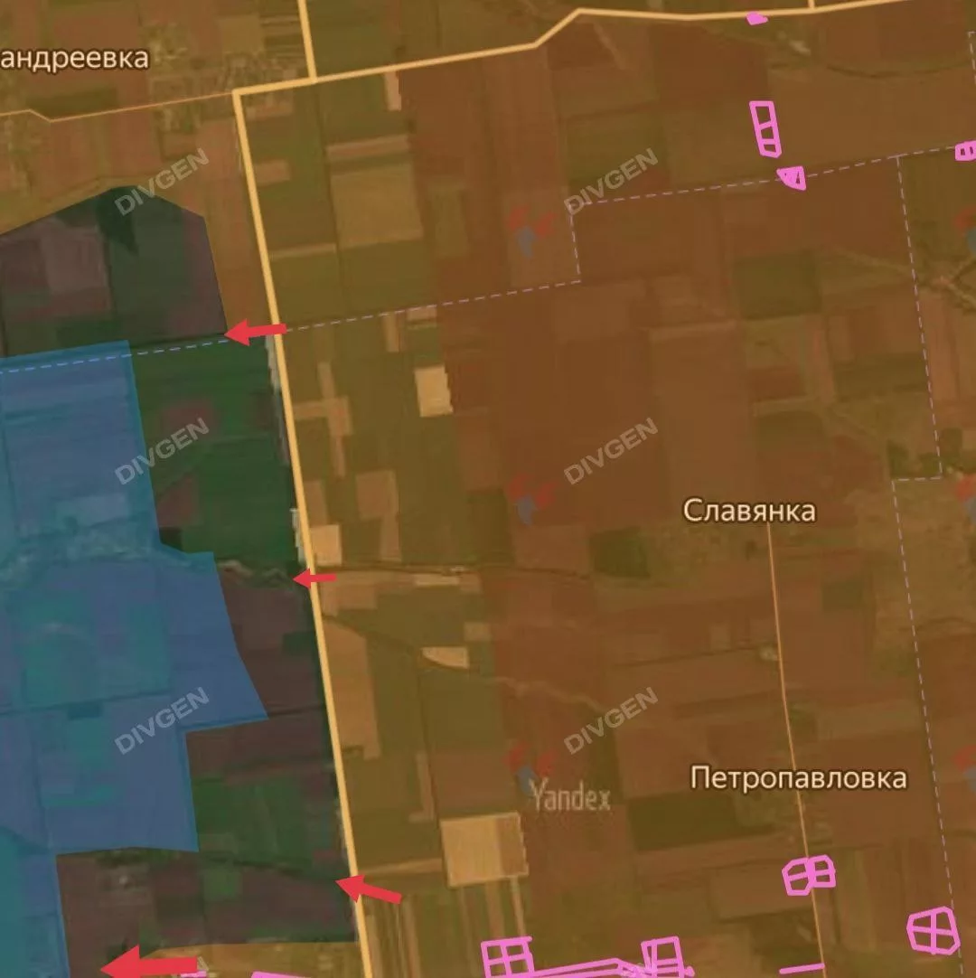 Южнее Надеждинки наши подразделения атакуют в западном направлении на Котляровку, а также с севера и юга (со стороны Запорожья) идут атаки Преображенки.