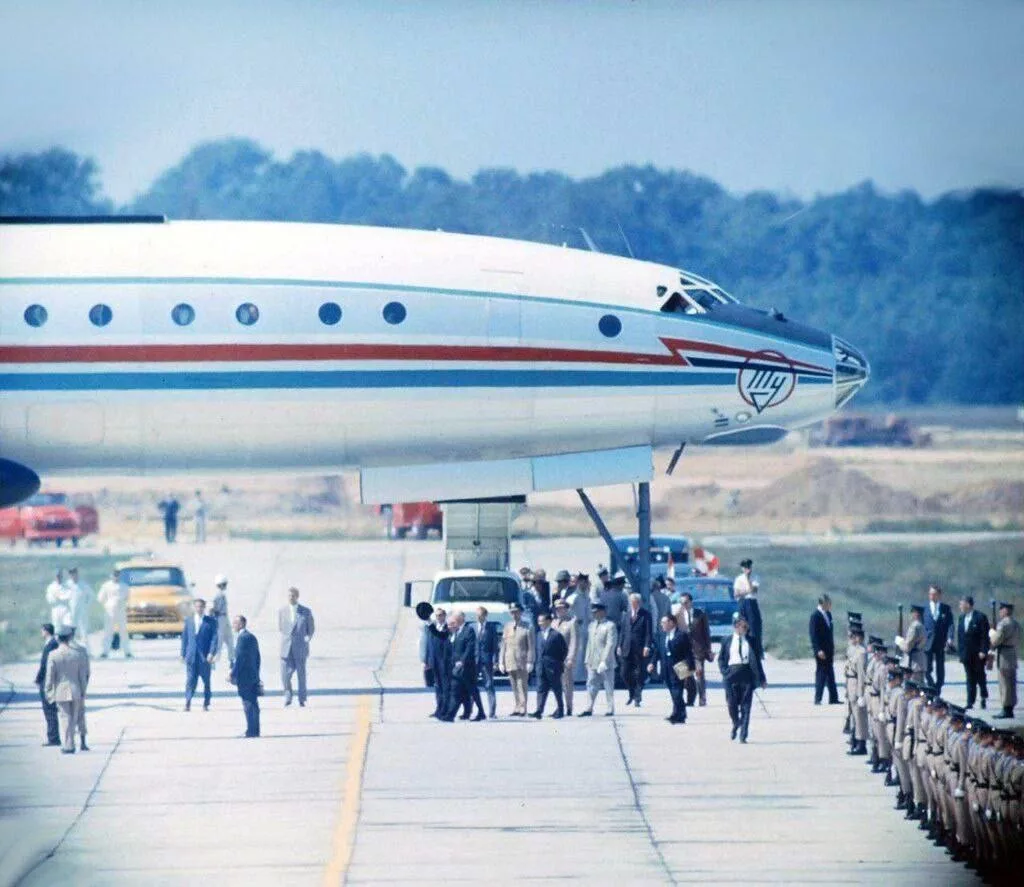 📌 На опытном образце был совершен перелёт советской делегации во главе с Хрущёвым в США в сентябре 1959-го. С 24 апреля 1961-го Аэрофлот использовал его на дальних линиях, в том числе и зарубежных (в Гавану, Нью-Йорк, Дели, Пекин). Самолёт мог вместить 224 пассажира.