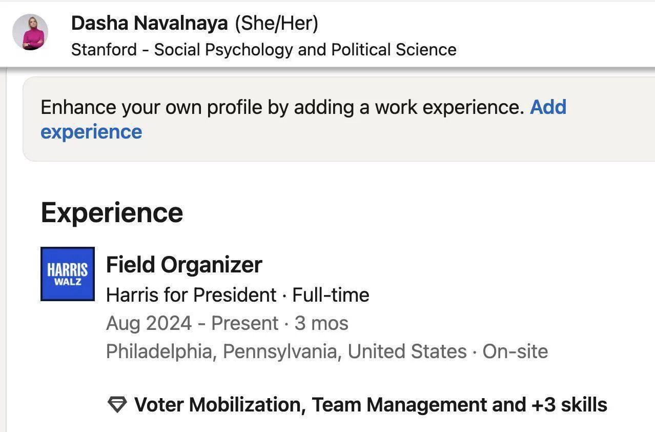 Информацию о своем месте работы девушка сообщила самостоятельно в приложении Linkedin.