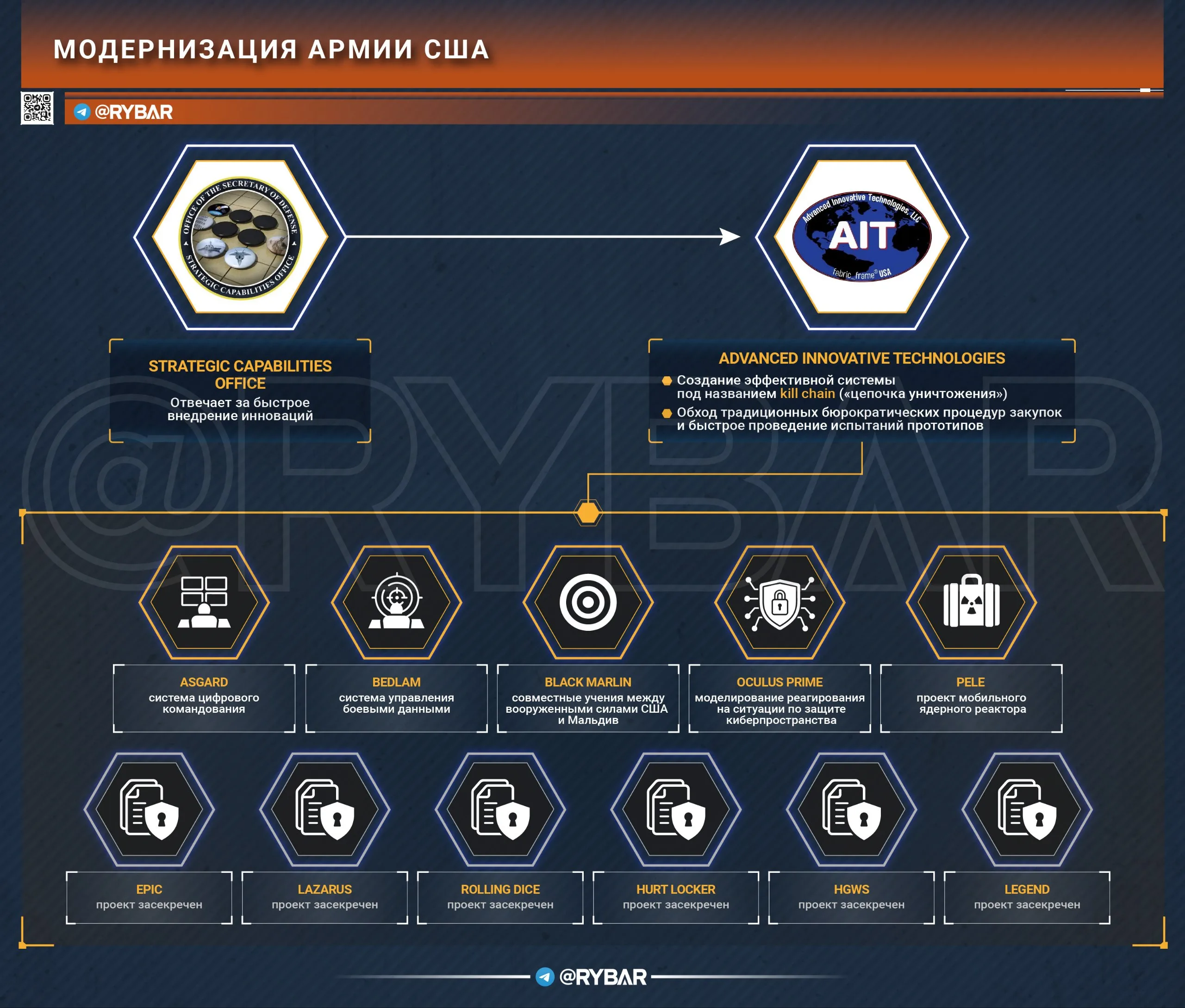 ▪️AIT позволяет миновать традиционные бюрократические процедуры закупок и быстро проводить испытания прототипов в рамках различных служб. Другими словами, акцент на ускоренное тестирование и внедрение инноваций для обеспечения технологического превосходства и улучшения возможностей по дальнобойному и быстрому нанесению обезоруживающих ударов.