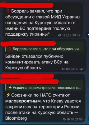 Только за последние несколько часов было сделано множество заявлений на высоком уровне. Сначала Госдеп опровергает появившуюся в СМИ информацию о причастности США к атаке. Пока ещё президент Байден тоже отказался публично комментировать действия ВСУ. Даже союзники по НАТО считают успех Киева маловероятным.